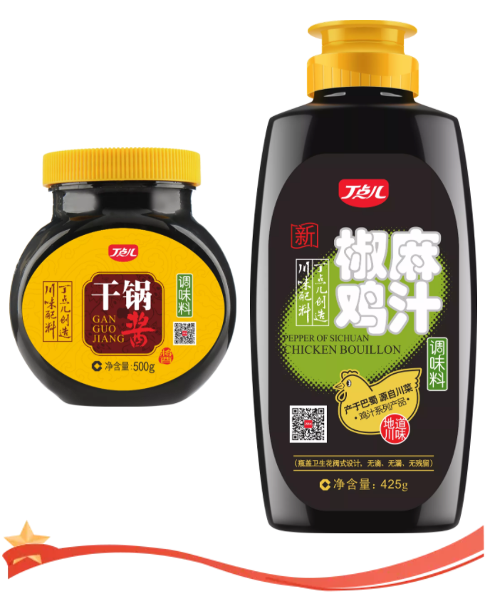 ? ? ? ?“丁點兒”干鍋醬、椒麻雞汁均為丁點兒股份于2011年推出的創(chuàng)新產(chǎn)品,兩款產(chǎn)品的包裝、裝潢都經(jīng)過丁點兒股份的獨創(chuàng)性設(shè)計,并獲得了國家知識產(chǎn)權(quán)局授予的針對包裝瓶和標貼的外觀設(shè)計專利。2012年“丁點兒”系列調(diào)味料被四川省人民政府認定為四川省名牌產(chǎn)品,“丁點兒”商標被認定為四川省著名商標,2017年“丁點兒”干鍋醬和椒麻雞汁雙雙入選《省級名優(yōu)產(chǎn)品》目錄。