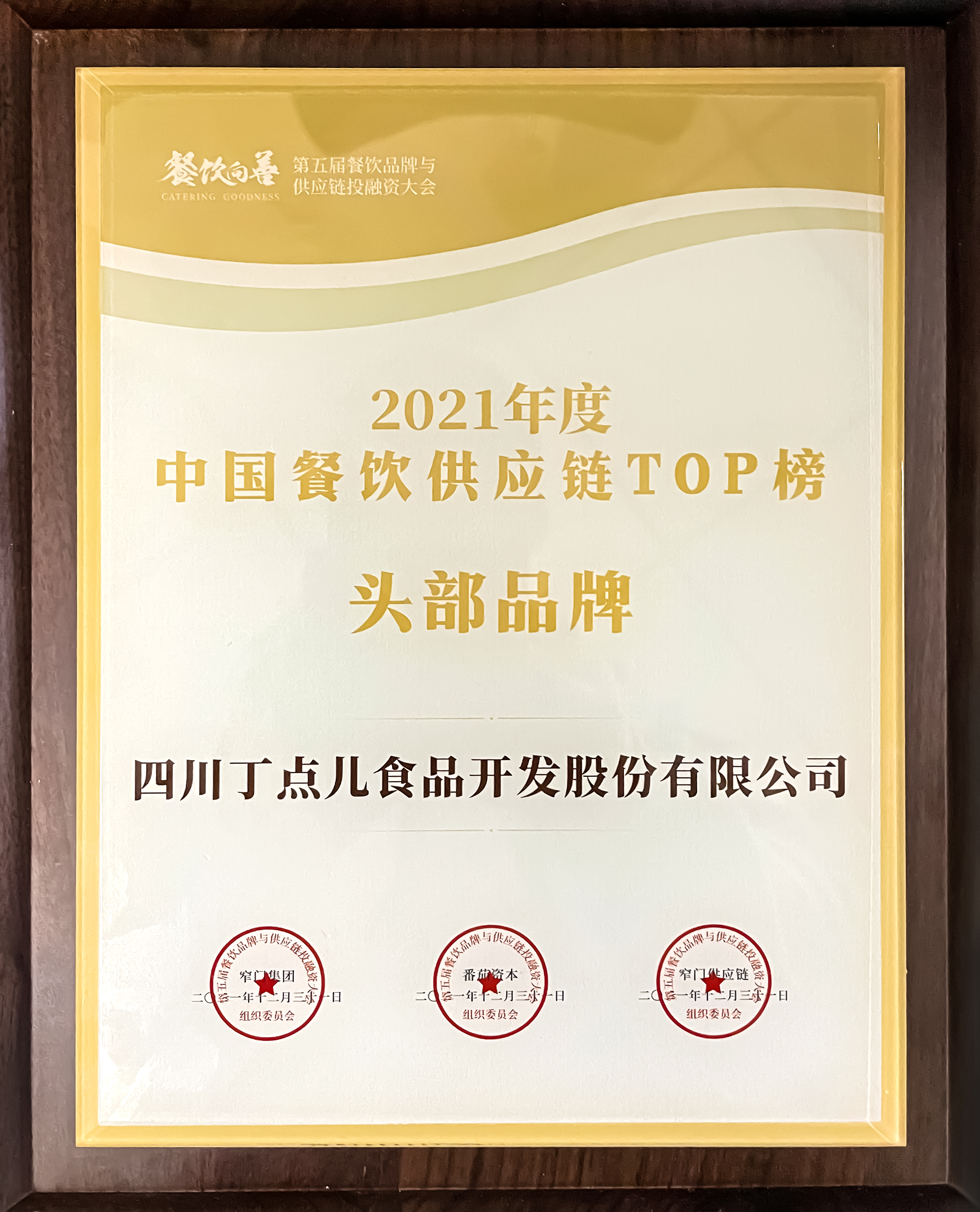 丁點兒股份榮獲“中國餐飲供應鏈TOP榜頭部品牌”稱號